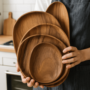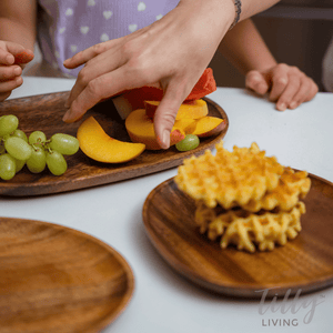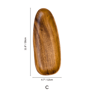 The acacia wood boasts a natural woodgrain finish so each one is unique. Acacia wood is a durable hardwood that is lightweight, scratch, and water-resistant. Its natural antibacterial property makes it the perfect material for serving food. Its smooth finish makes it easy to clean too. Simply warm hand wash after each use.